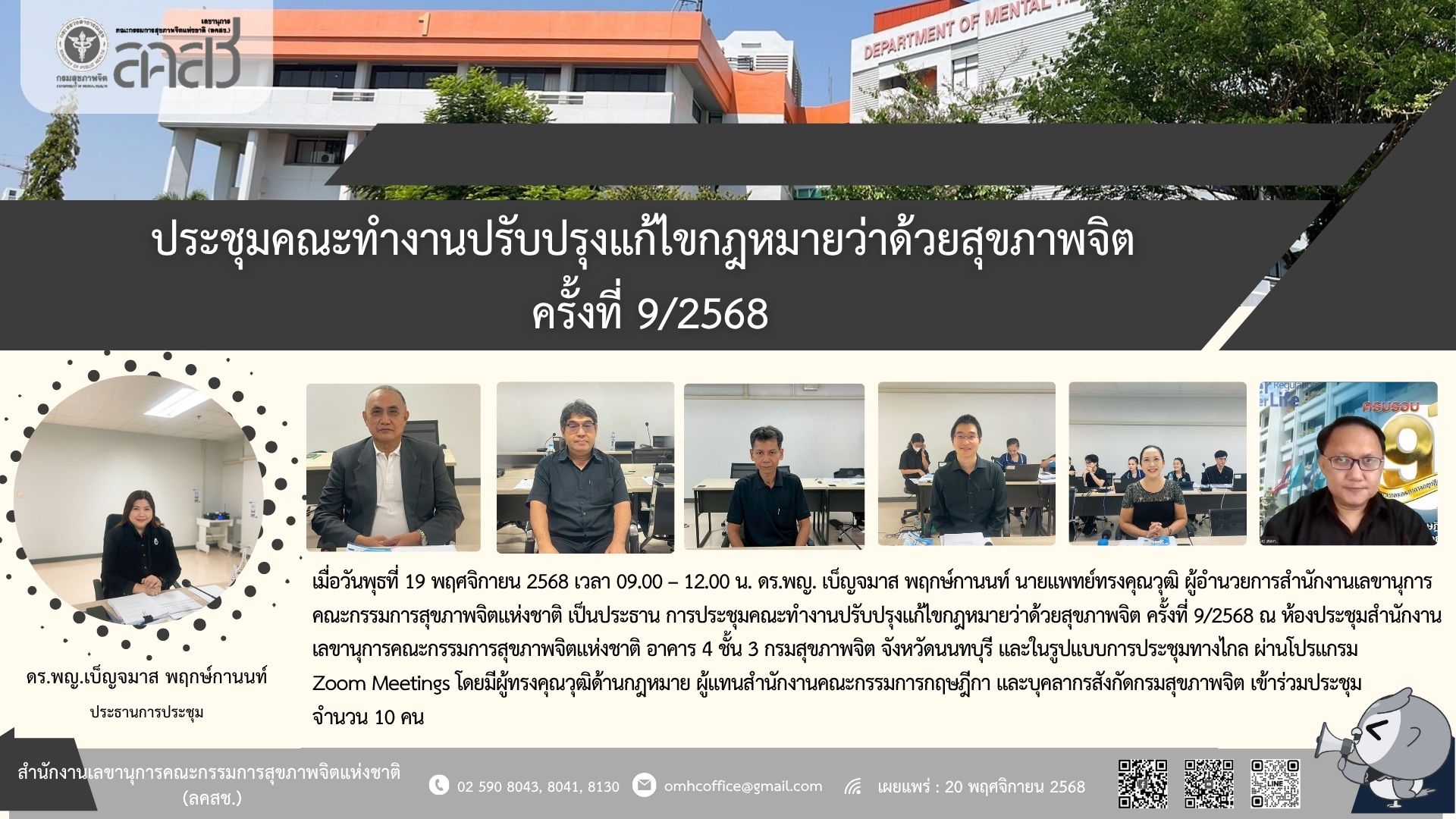 ประชุมคณะทำงานปรับปรุงแก้ไขกฎหมายว่าด้วยสุขภาพจิต ครั้งที่ 9/2568