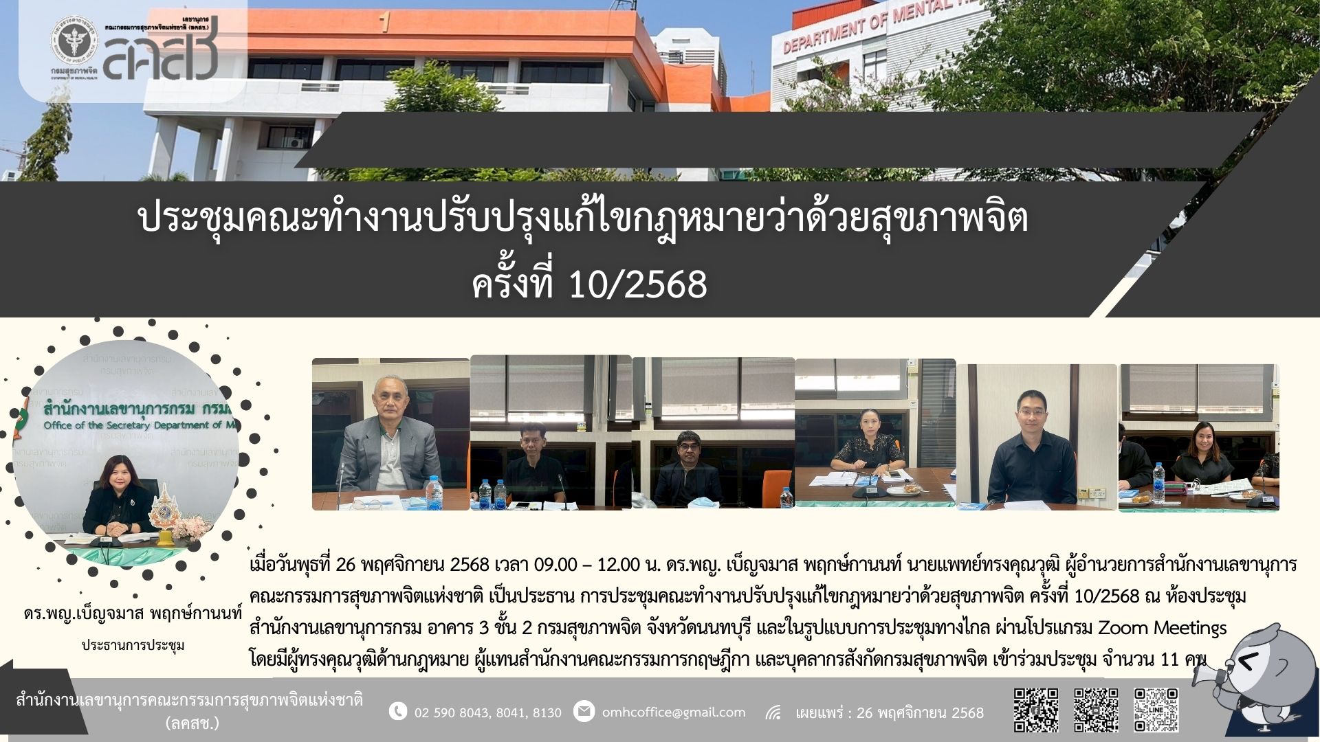 ประชุมคณะทำงานปรับปรุงแก้ไขกฎหมายว่าด้วยสุขภาพจิต ครั้งที่ 10/2568