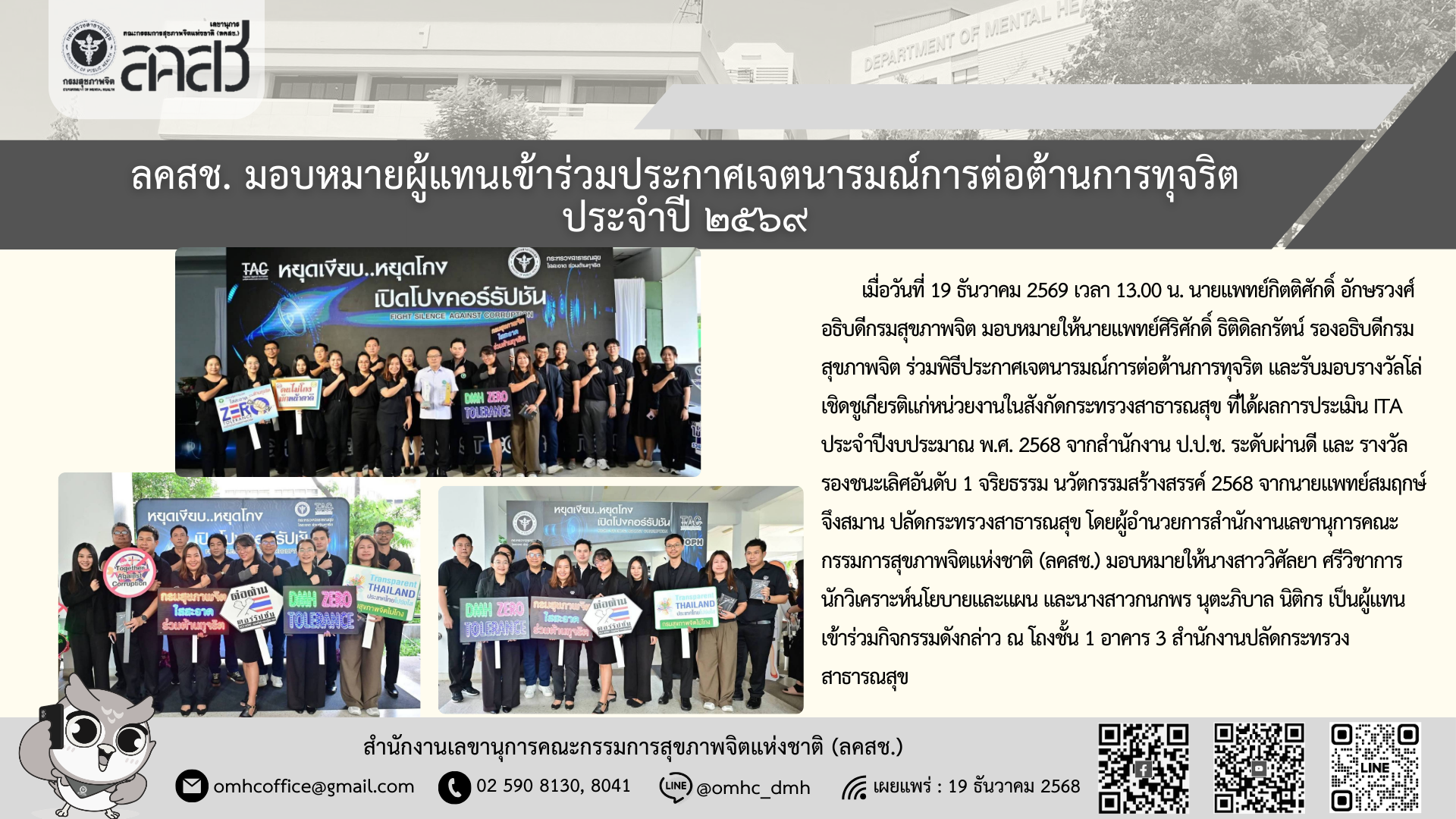 ลคสช. มอบหมายผู้แทนเข้าร่วมประกาศเจตนารมณ์การต่อต้านการทุจริต ประจำปี 2569