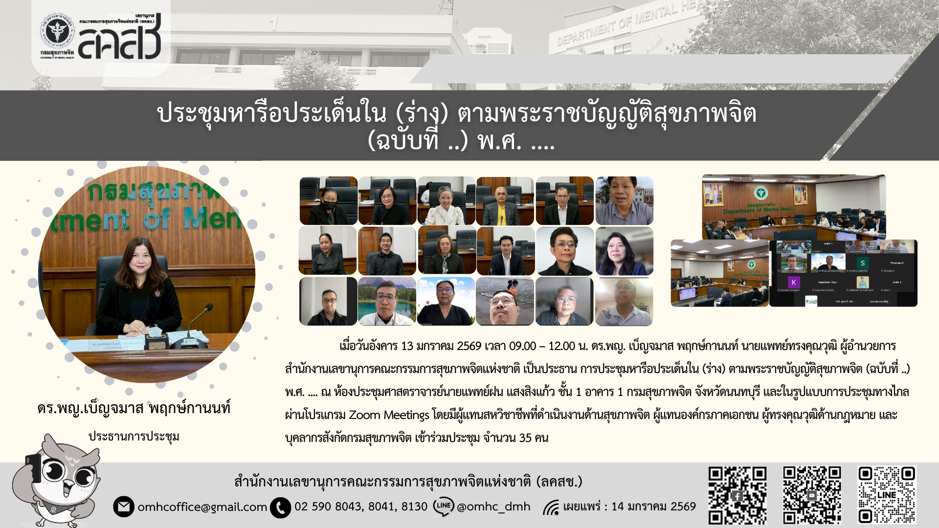 ประชุมคณะทำงานปรับปรุงแก้ไขกฎหมายว่าด้วยสุขภาพจิต ครั้งที่ 1/2569