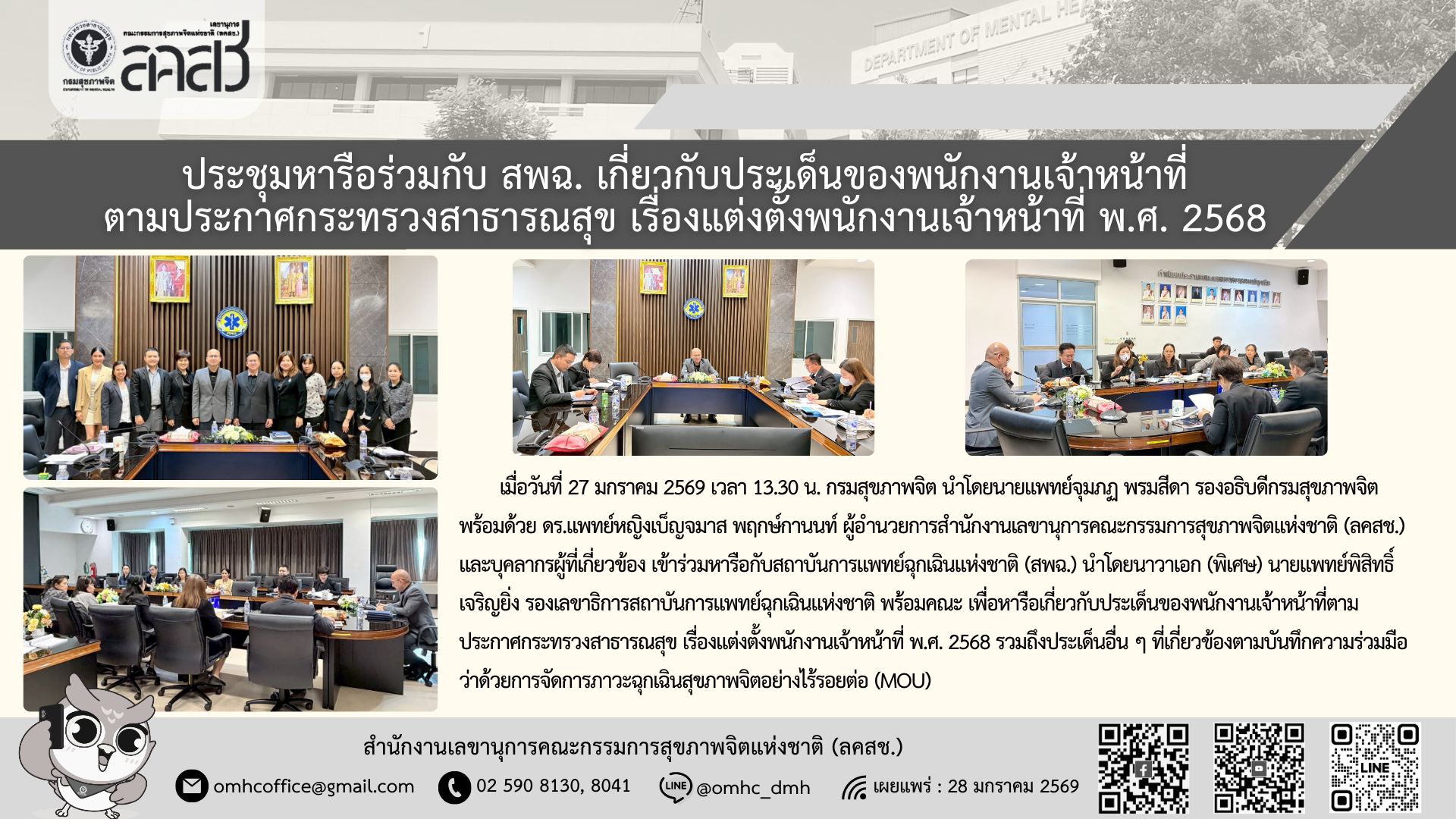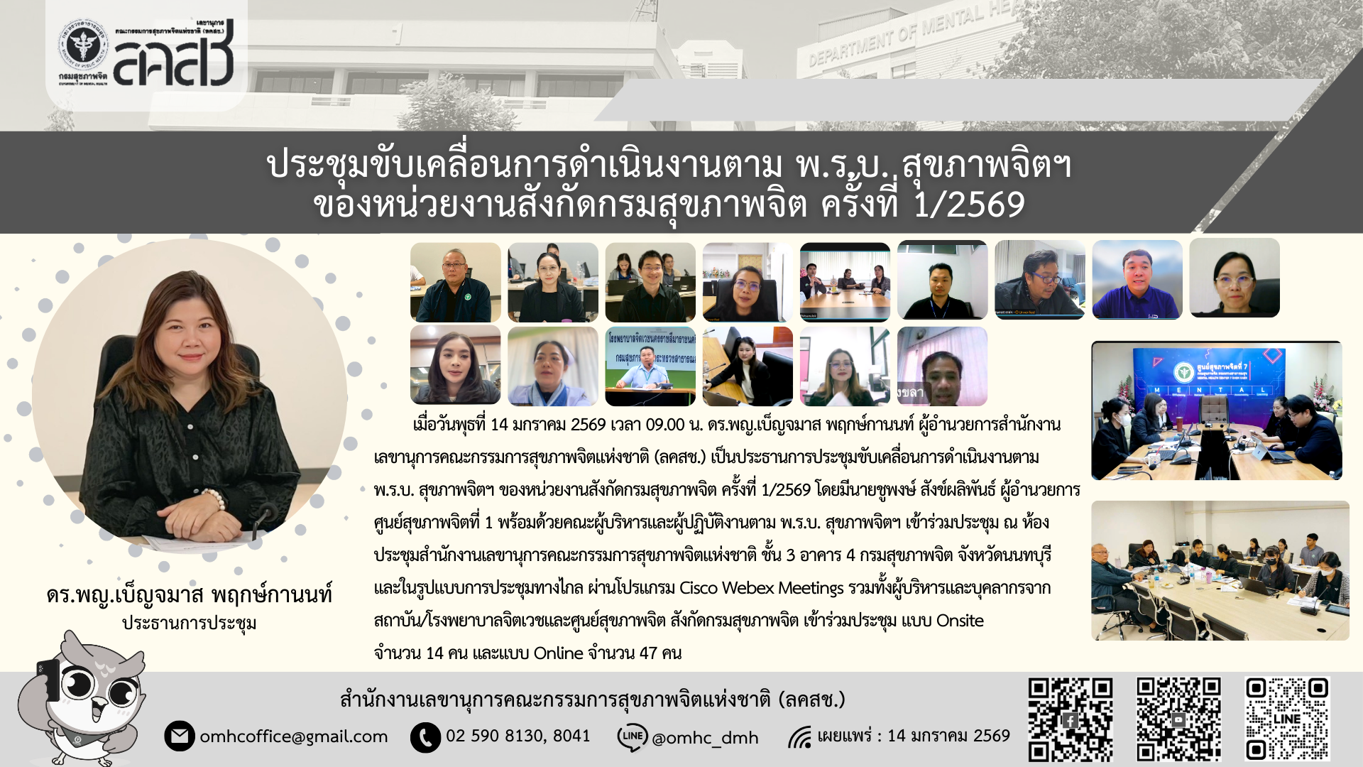 ประชุมขับเคลื่อนการดำเนินงานตาม พ.ร.บ. สุขภาพจิตฯ ของหน่วยงานสังกัดกรมสุขภาพจิต ครั้งที่ 1/2569