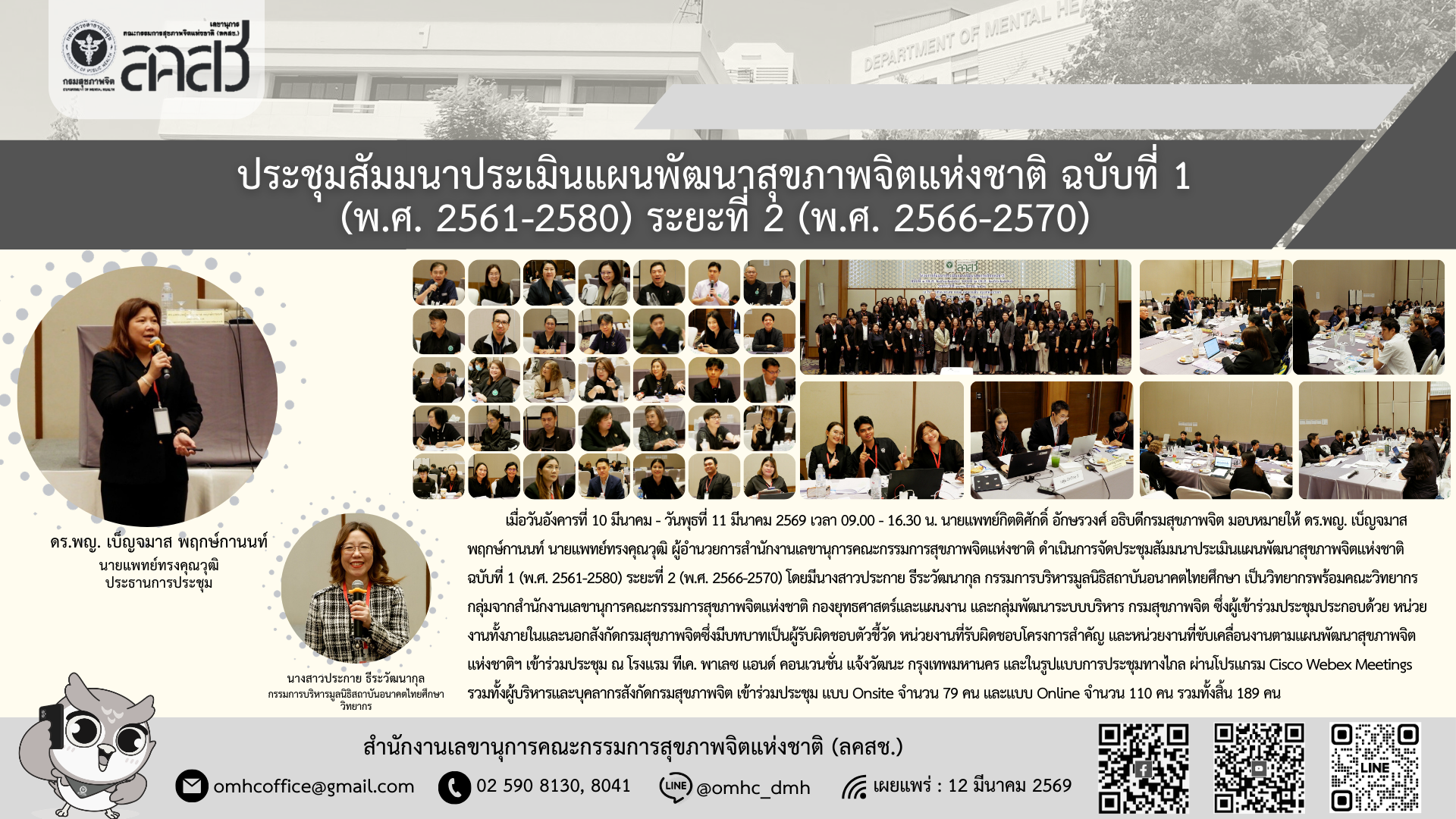ประชุมสัมมนาประเมินแผนพัฒนาสุขภาพจิตแห่งชาติ ฉบับที่ 1 (พ.ศ. 2561-2580) ระยะที่ 2 (พ.ศ. 2566-2570)
