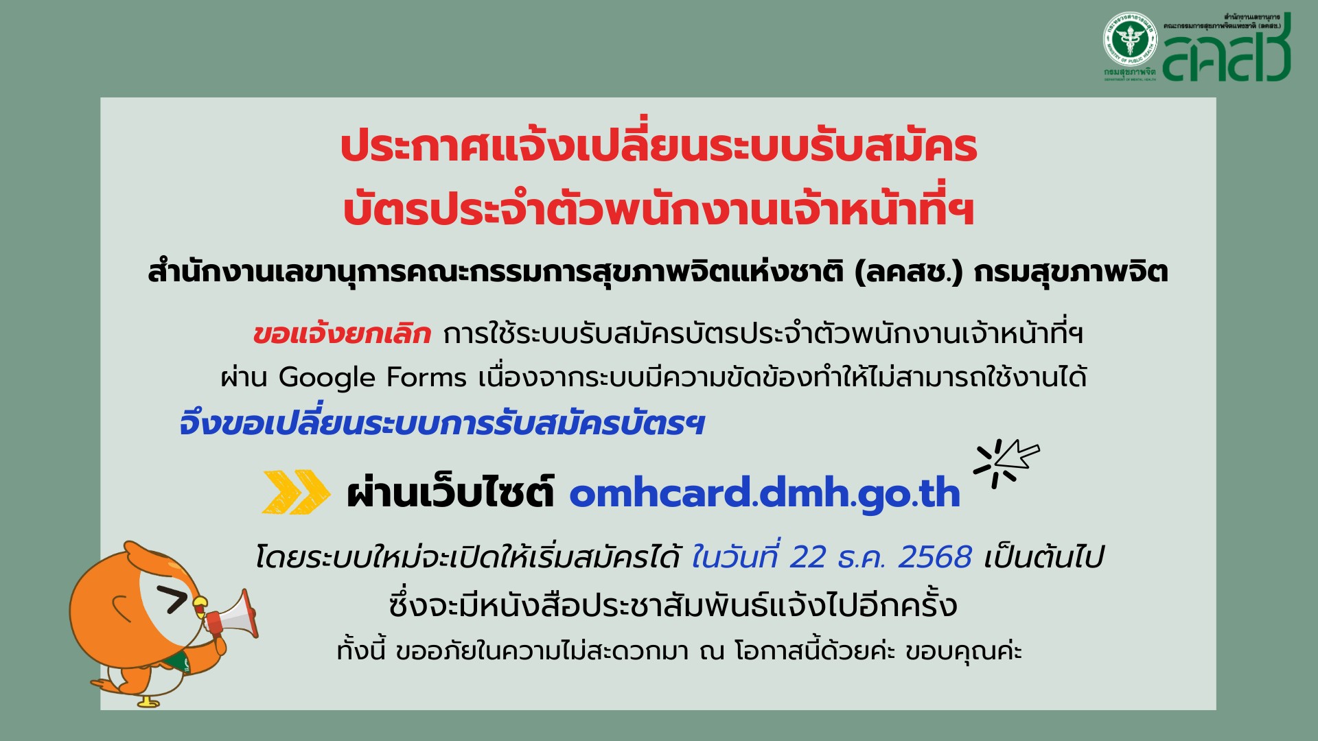 ประกาศแจ้งเปลี่ยนระบบสมัครบัตรพนักงานเจ้าหน้าที่